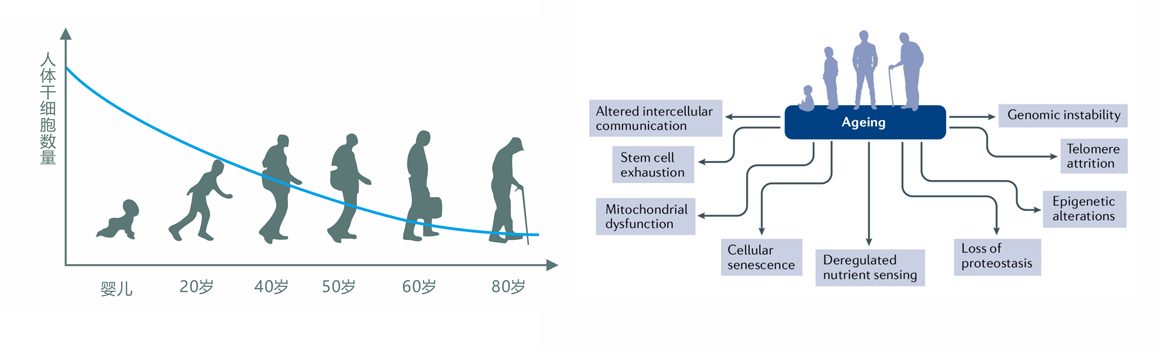 隨著年齡增長,體內(nèi)干細(xì)胞數(shù)量逐年減少、活力下降,到30歲時干細(xì)胞只剩下出生時的一半,干細(xì)胞耗竭是衰老的重要原因。